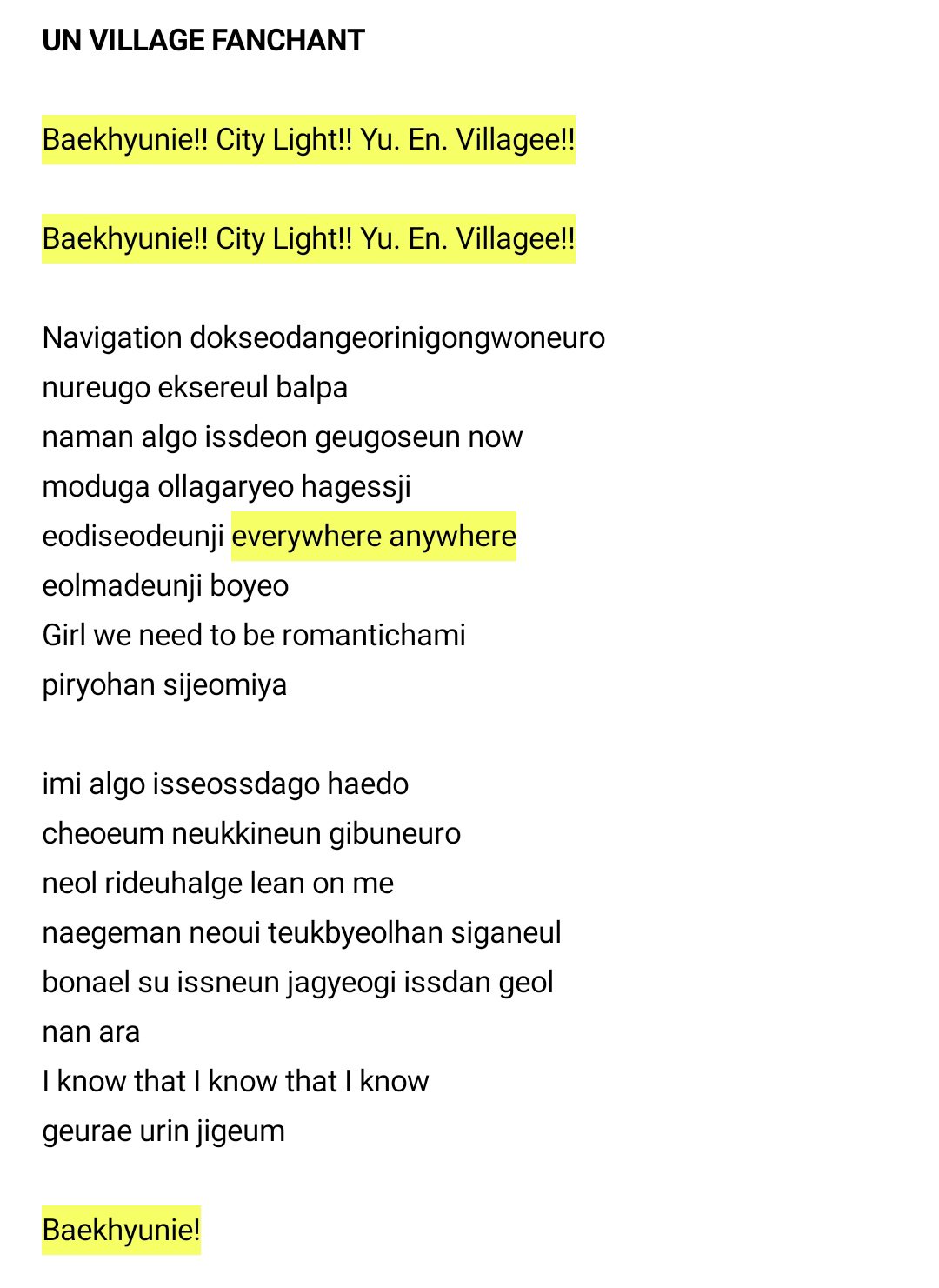 Candy On Twitter 5 Un Village Baekhyun Solo Fanchant