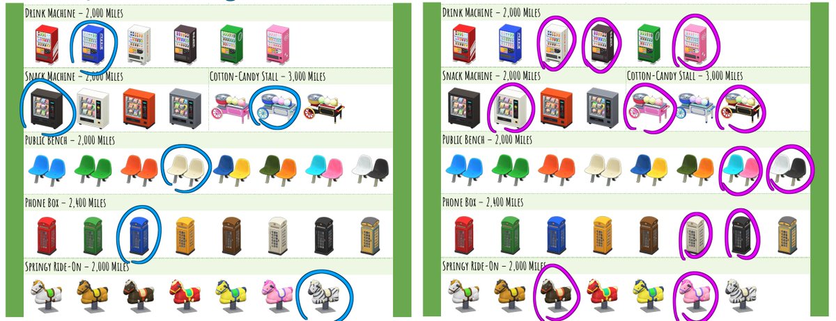 Animal Crossing Miles Furniture Color Variations List Acnh